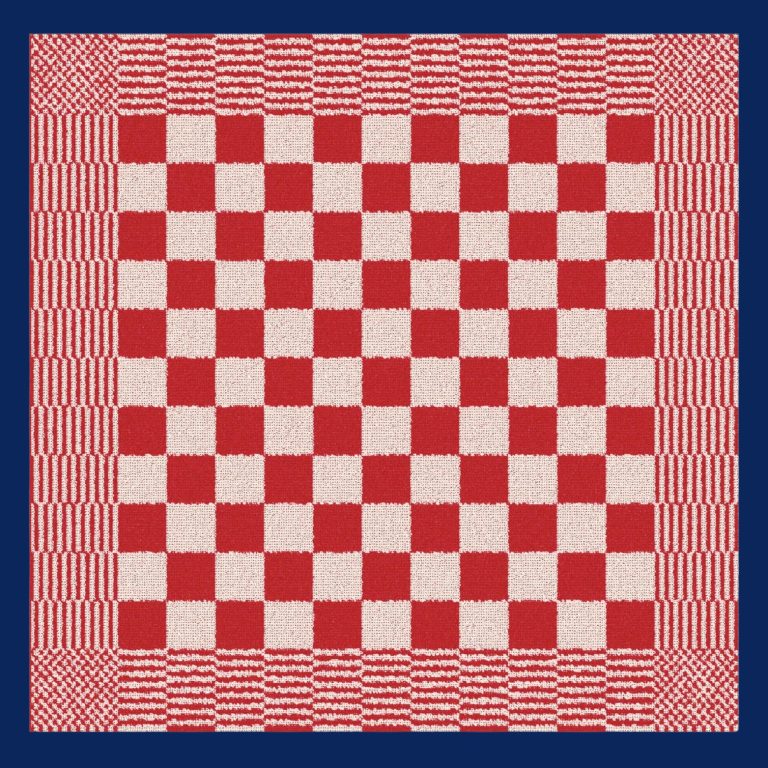 Keukendoek pompdoek rood met oudhollandse ruit bij Bellebien. 100% katoen badstof.