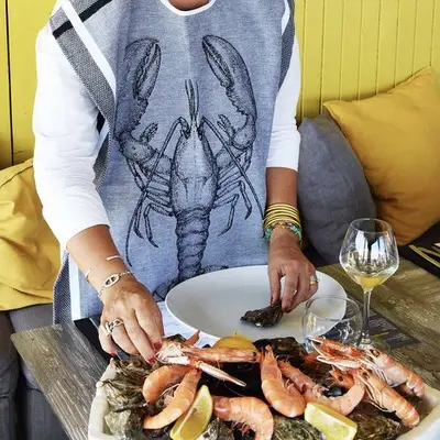 Door zijn royale afmeting beschermt de kreeftenslab uw kleding goed.
