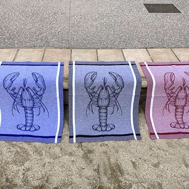 Kreeftenslab rood, kreeftenbavet,  homard bavoir in het Frans, bij Bellebien. U kunt een kreeftenslab bestellen in rood, blauw en zwart.