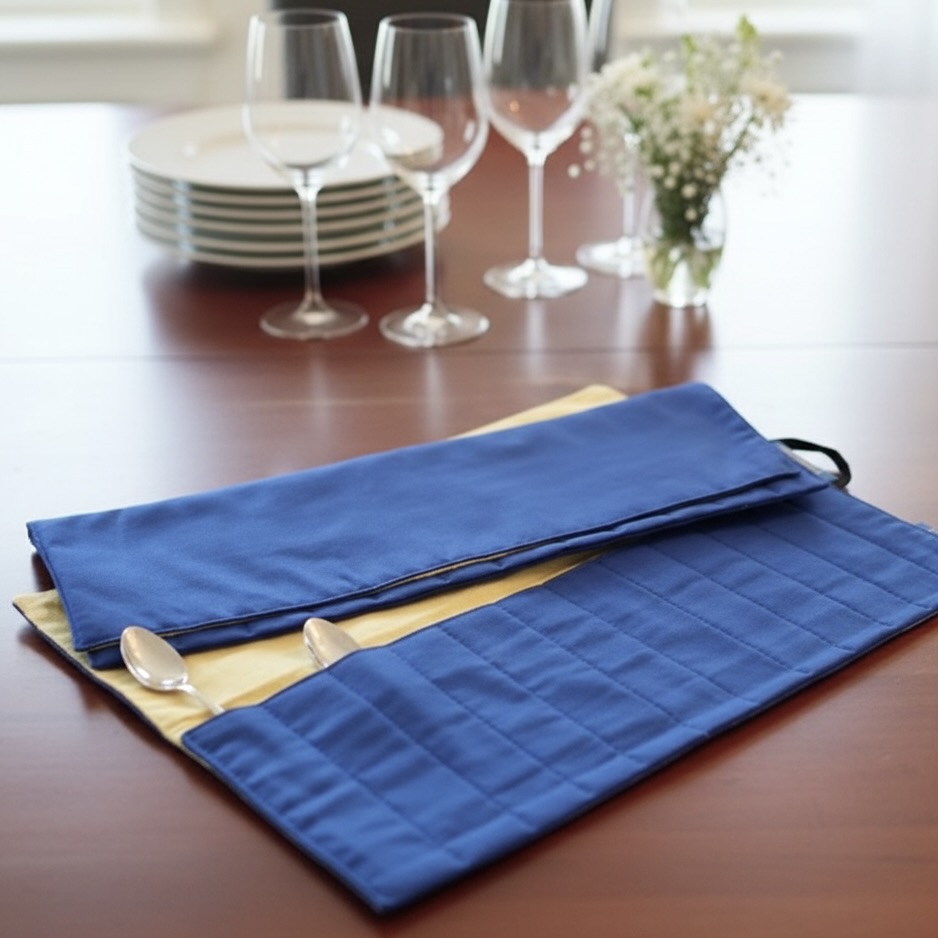 De bestekhoezen zijn te koop in de kleuren donkerblauw, donkergroen, koningsblauw, kersenrood en zwart.