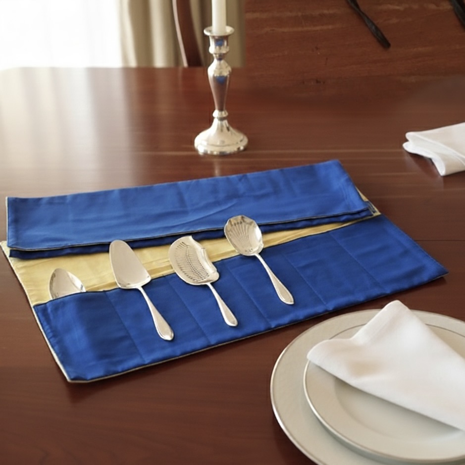 Bestekhoes voor schepwerk koningsblauw van Bellebien is namelijk gevoerd met zilverdoek. Hierdoor hoeft u uw tafelzilver nog maar weinig te poetsen.