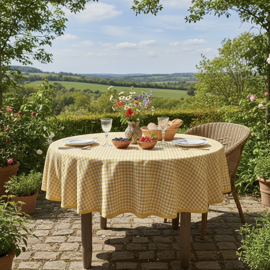 Rond tafelkleed geruit kleine ruit geel 140 180 200 rond  is al 20 jaar een topper in de Bellebien-collectie!