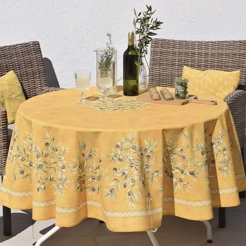 Frans tafelkleed 180 rond Oliviers geel gecoat Bellebien