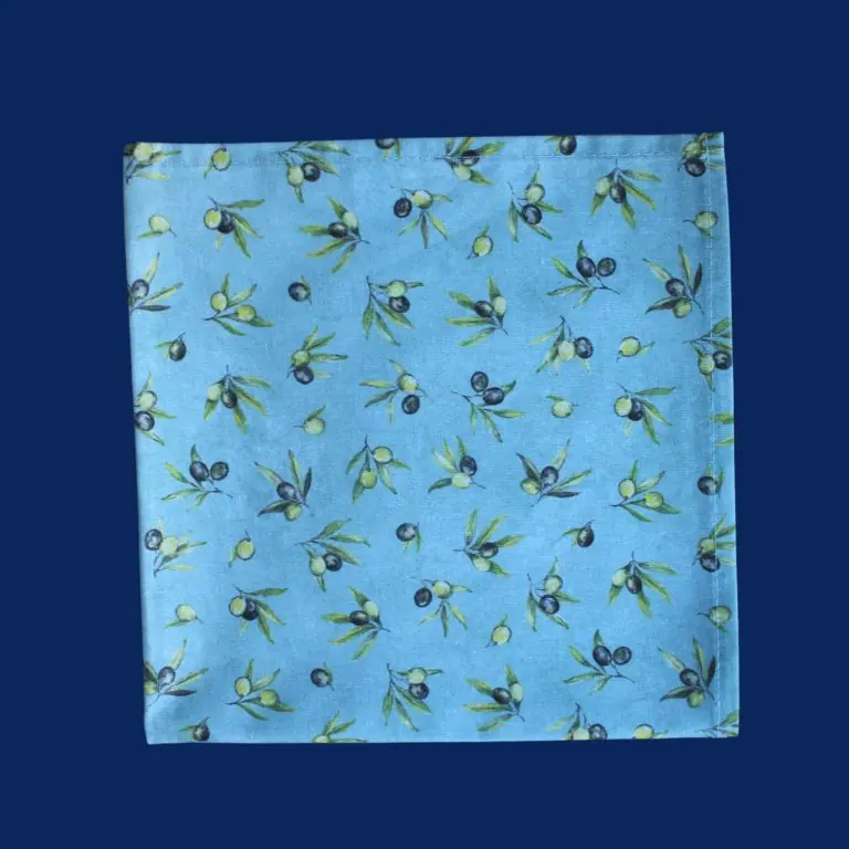 Op de foto lijkt deze servet blauwer dan in werkelijkheid. De kleur groen is dezelfde als het groen van de tafelkleden.
