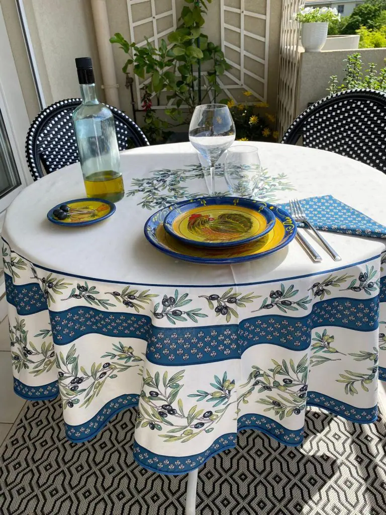 Rond gecoat Frans tafelkleed afwasbaar afneembaar Garance Blauw Bellebien