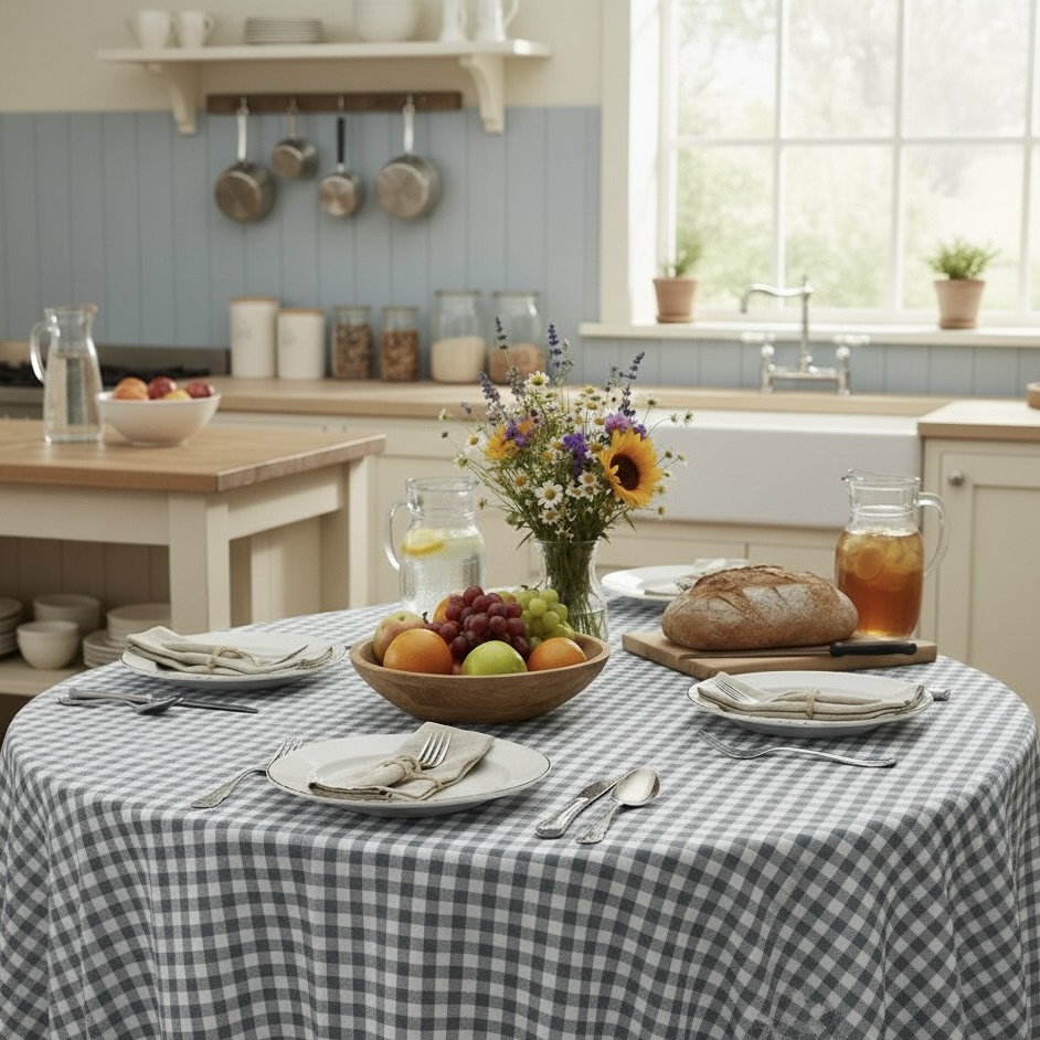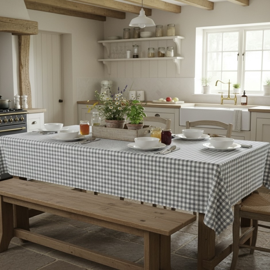 Geruit tafelkleed grijs wit geruit gecoat Bellebien