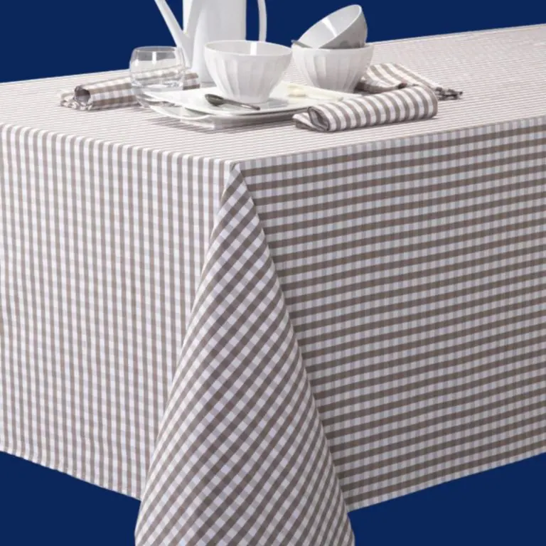 Geruit tafelkleed taupe wit gecoat Bellebien
