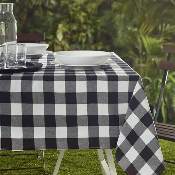 Dit gecoate tafelkleed zwart kan nat worden afgenomen. Het kan op 30° in de wasmachine, maar mag niet in de droger.