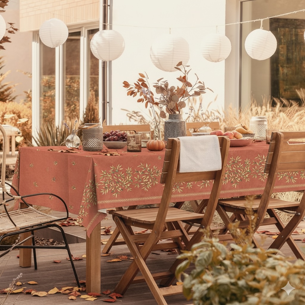 - Om de anti-vleklaag (de coating) en de kleuren zo lang mogelijk te behouden, adviseren wij u om het tafelkleed niet onafgebroken buiten te laten liggen.