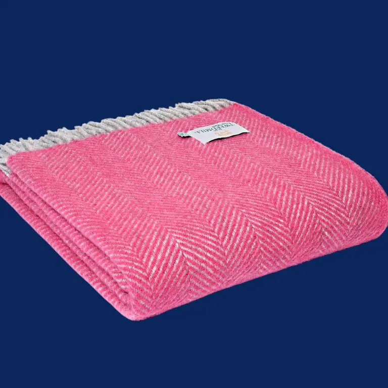 Plaid throw wol Fishbone Pink Fuchsia Bellebien