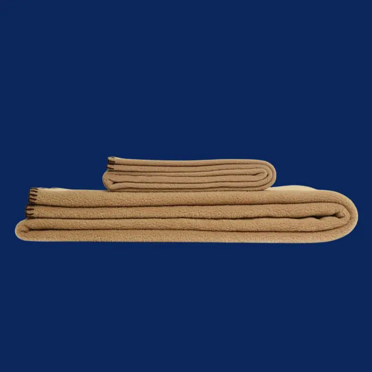 Fleeceplaid Camel is fraai afgewerkt met de festonsteek, de dekensteek.